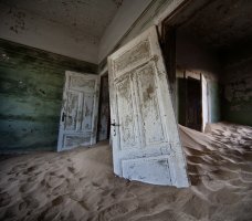Ces images de land art ont été shootées dans les maisons abandonnées et les villes fantômes du désert de Namibie.