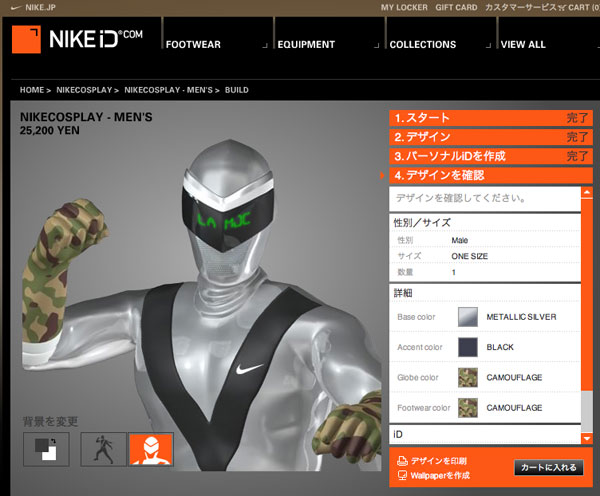 Voici le costume de Cosplay que nous venons de nous faire sur le site de Nike ID Japon !
