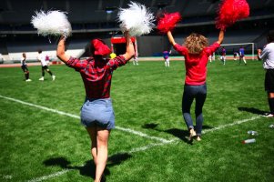 L’ambiance, bon enfant et idéalement sublimée par un soleil radieux, battait son plein, avec les cheerleaders d’Andrea Crews et les nombreux fans assurant tout autant le spectacle que les acteurs du terrain.
