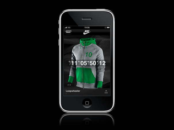 Nike Sportswear sort son application iPhone True City en Europe.