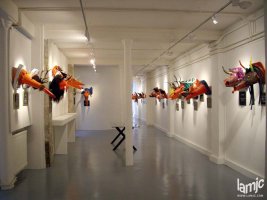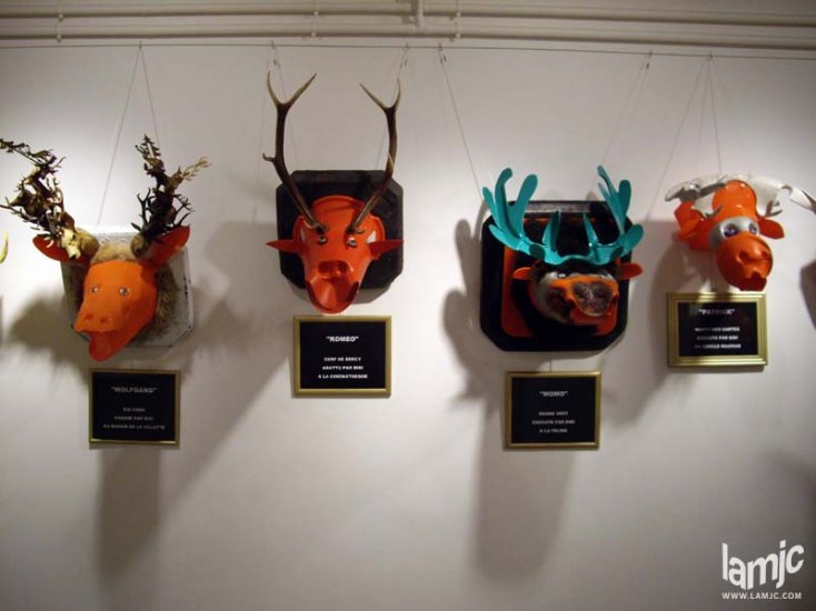 Artiste peu connu mais à la carrière déjà dense, Bibi présente en ce moment ses trophées de chasses parisiennes à l’Espace Beaurepaire. Points d’animaux lâchements abbatus ni empaillés, mais une grosse collection de plots de signalisation revus en un bestiaire génial.