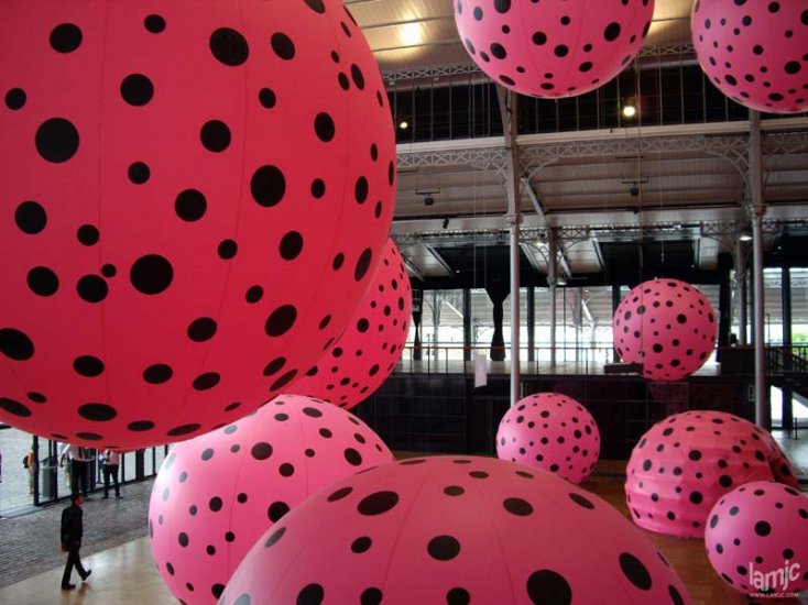 Yayoi Kusama est une artiste majeure de la scène artistique contemporaine. Composée de ballons gonflables géants roses dont certains peuvent être visités, son installation "Dots Obsession" reprend le motif du pois qu’elle décline maintenant depuis plus de 40 ans.